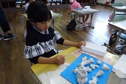 「にぎにぎ ねんど」の課題で、1,2年生はアイデアいっぱいに表現しています。