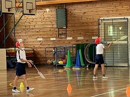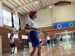 本日のクラブ活動は、バドミントンに取り組んでいます。まずは、ウォーミングアップです。