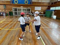 3・4年生は、体育館での体育です。授業始めの「わくわく運動」をやっていました。2人組や3人組、全員で協力する運動もあり、かなりの運動量があります。1年間を通して、かなり体力がつきそうです。