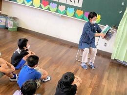 今月は読書月間です。本日は、細田地区の読み聞かせグループによる「ひまわりタイム」がありました。