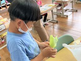 本日の1・2年生の生活科では、身近にあるものを使っておもちゃづくりをしています。みんな試行錯誤を繰り返して工夫しています。