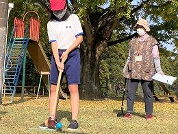 本日のクラブ活動は、地域の方々と一緒に「グランドゴルフ」で交流しました。