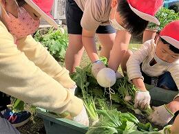 本日の1・2年生の生活科では、育てていた蕪を収穫しました。