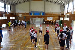 3,4年生の練習の様子です。4年生がお手本になってくれています。