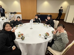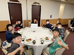 昨日の夕食の様子と西郷さんとの記念写真です。