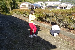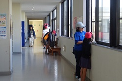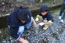 細田中学校のお兄さん、お姉さんと一緒に、校区内の支所や公民館の清掃活動を行いました。
