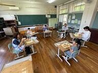 教室をのぞきに行くと、普段と違って円形に机を並べ、互いの顔を見合いながら食べています。どの子もうれしそうです!! うれしかったり楽しかったりすると食も進むようです。