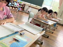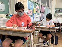 本日の国語では、1年生が、助詞の使い方を学習しています。2年生は、観察したことを文章に書く学習をしています。