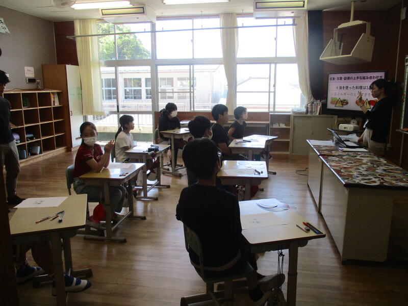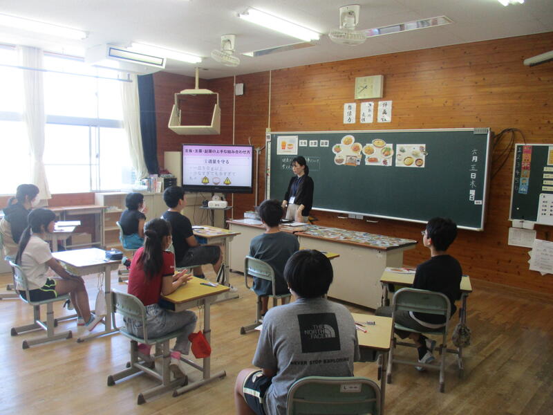 5日は、6年生の家庭科の時間に食育の授業が行われました。内容は健康でいるための食事について考えようということで、一汁三菜について理解し、主食、主菜、副菜をとることが栄養バランスのとれた食事につながるということを学習しました。最初と最後にバランスのとれた食事のメニューづくりをしていきましたが、最初と比較するとどの子供も栄養バランスのとれた食事のメニューを作っていました。授業を振り返って書いた子供たちの感想には、主食が2つで主菜がなかったり、料理の量に偏りがあったりしたので気を付けていきたい。などと、学習を自分の生活に生かしていく姿勢が見られました。とても素晴らしいことだと思います。
