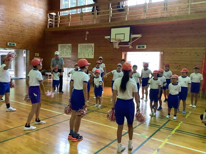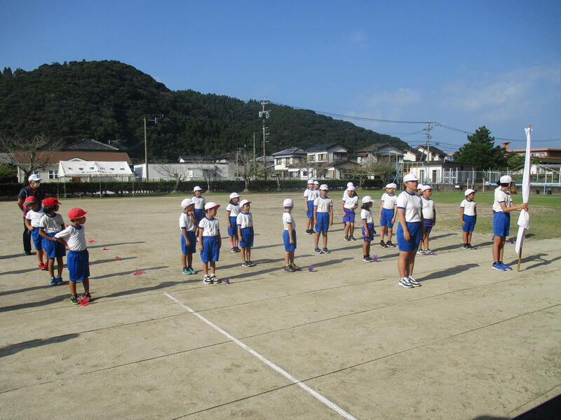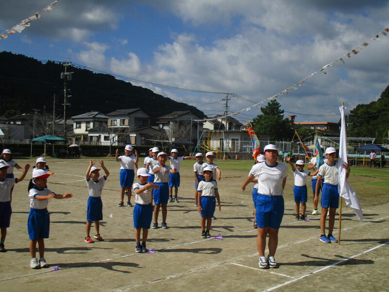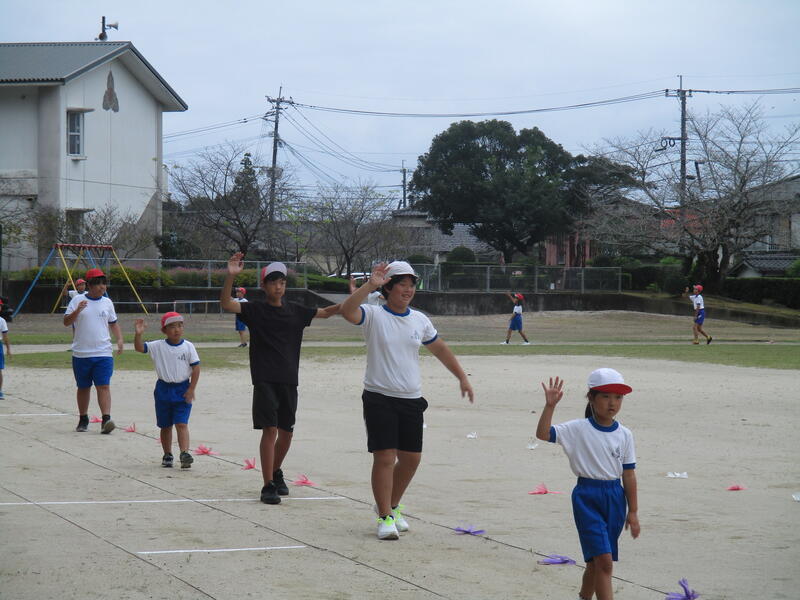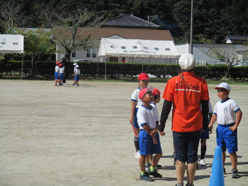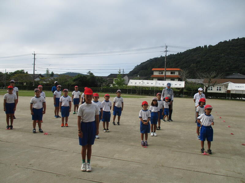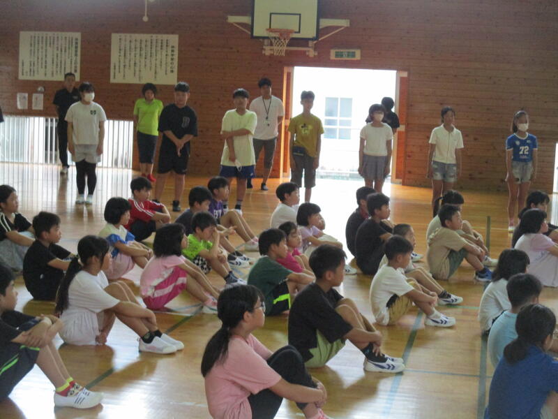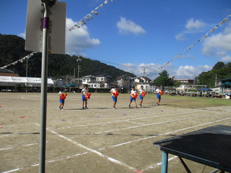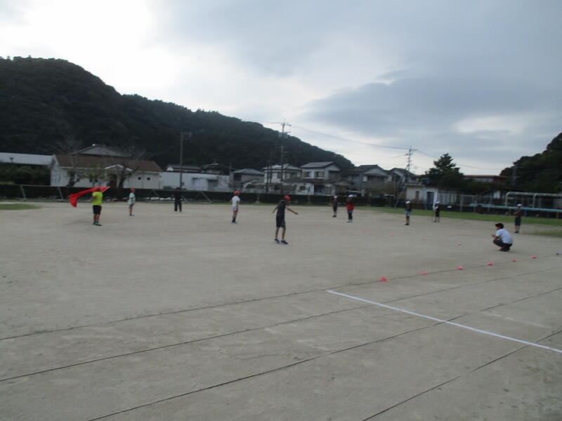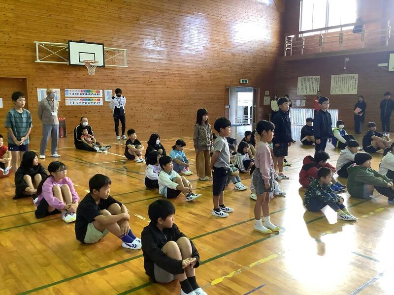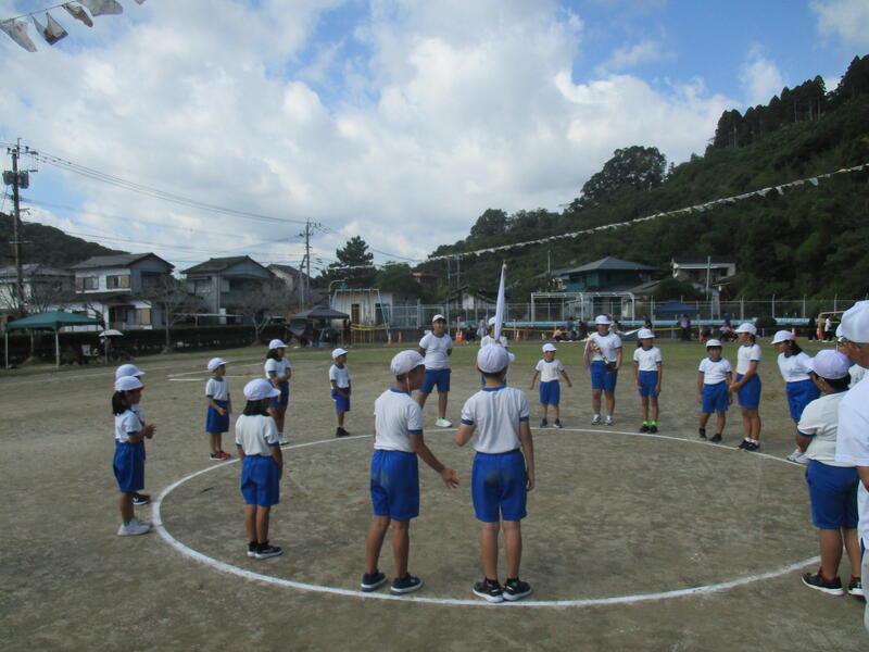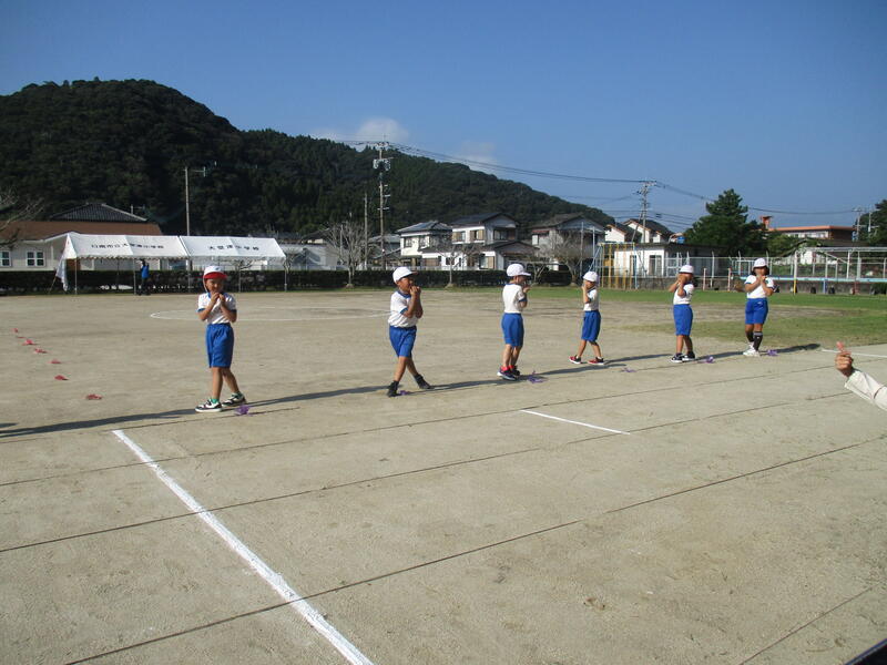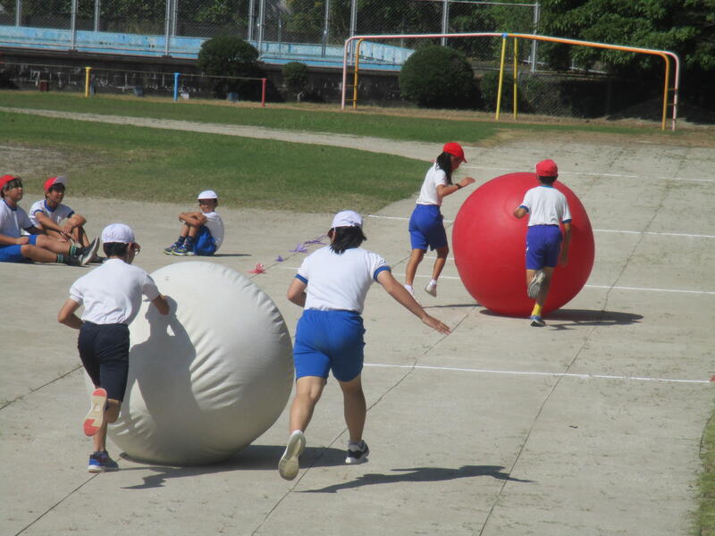 5日は、台風15号も去って晴天でした。そんな中で、1、2年生が体育館で体育の授業を行っていました。今回は体つくり運動で特にボールを投げる運動を中心に取り組みました。最初に全体でラジオ体操を行いました。先生から、腕や足の曲げ伸ばし、指先に力を入れることなどの指導を受けながら上手に体操ができていました。その後、日南市の小学校で行っている「わくわく体操」を全体で行い、ボール投げ運動です。下から両手、上から両手、上から片手など段階的に投げ方の練習をしていきました。とても楽しそうな1、2年生でした。