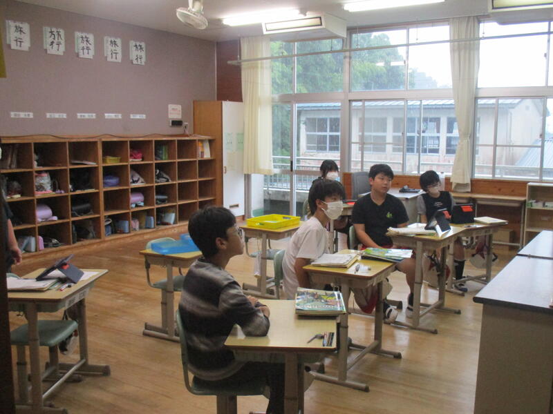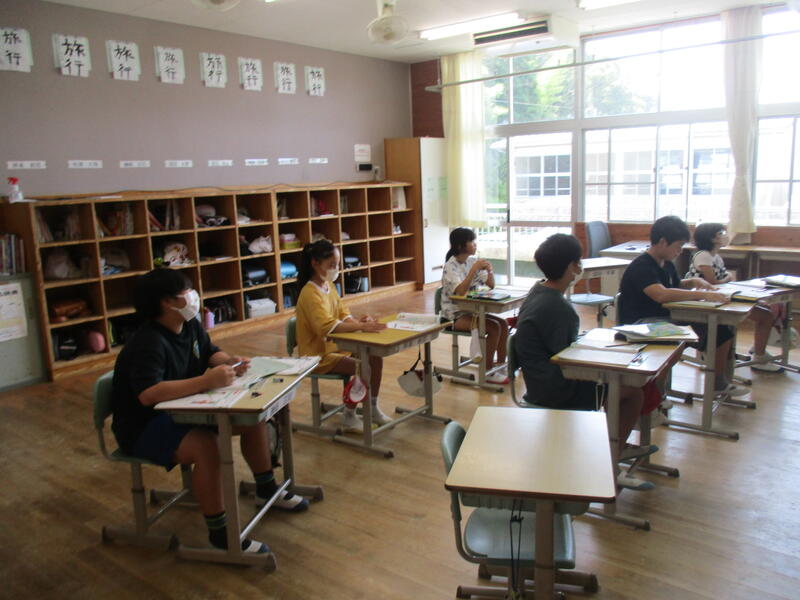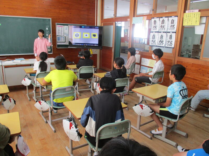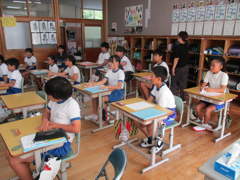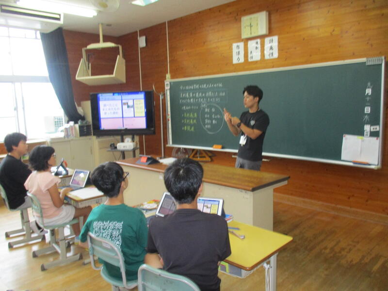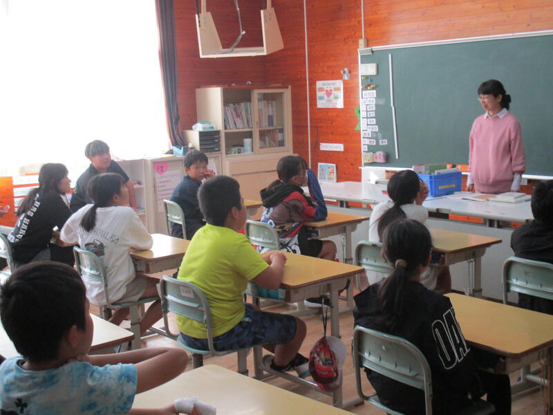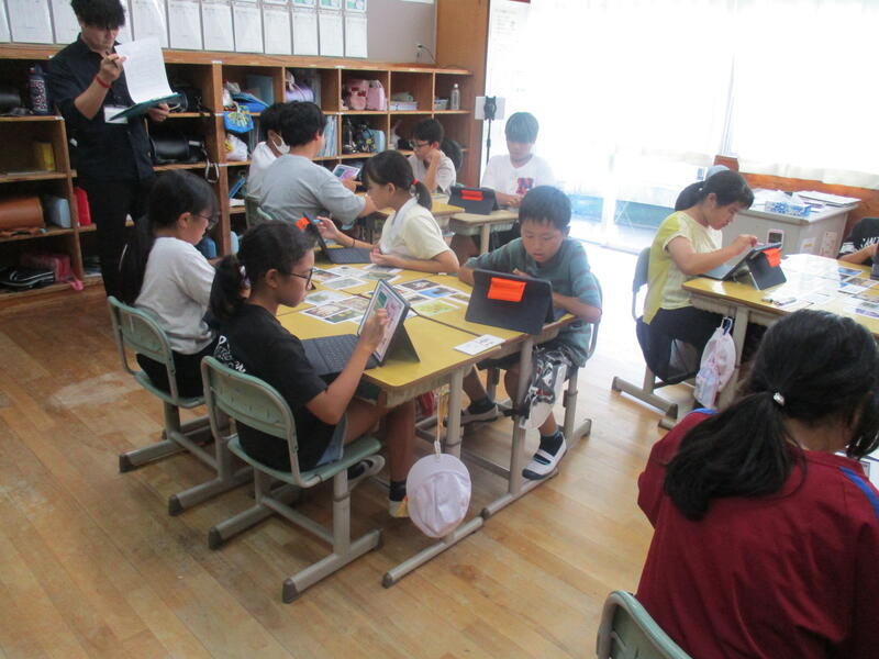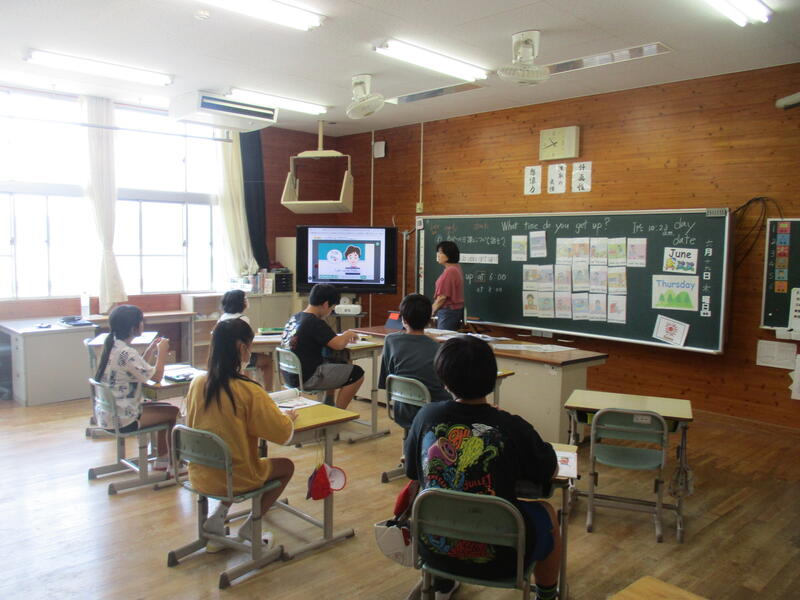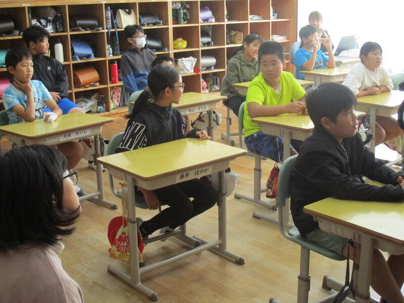 14日はALT訪問の日で、外国語の学習にカンヤ先生が参加する日でした。5年生も6年生も外国語担当の大平先生が質問したり、カンヤ先生の発音を聞いたりしながら英語での質問に英語で回答しようと一生懸命でした。4月からこれまで、英語の質問に英語で回答したり、自分達が英語で質問したりしながら学習に取り組んでいましたが、4月当初と比較しても自信をもちながら取り組めるようになったと思います。