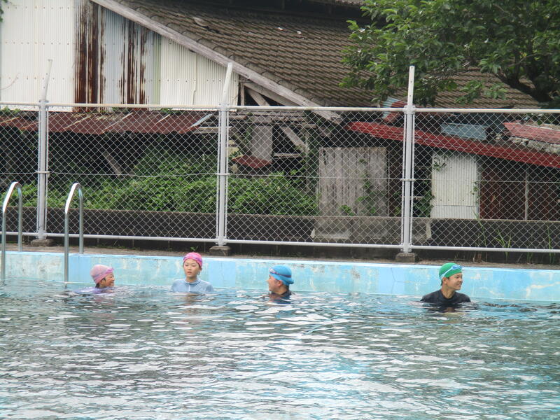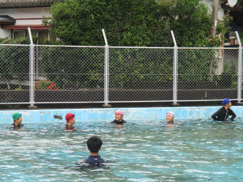 8日の3時間目は3年生から6年生が着衣泳を行いました。子供たちは、 着衣のまま水に落ちたときの動きにくさを体感しました。また、無理に泳ぐと体力を消耗することや、浮いて待つことの大切さを理解していました。それに、ペットボトル1本など身近な物を利用して、浮くことができることも体感していました。服を着た状態で浮くなどはあってはならないことですが、いざというときの対応は繰り返し練習することでできるようになると思います。