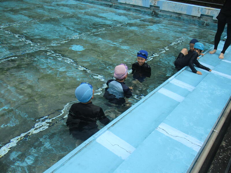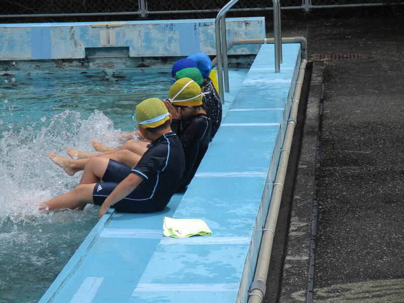 10日は、プール開きでした。プール開きは、予定では9日だったのですが、荒天のために10日に行いました。2校時に高学年、3校時に低学年、5校時に中学年が行いました。子供たちは、久しぶりのプールということもありプールに入るときには歓声が上がっていました。10日は、游ぐというよりはどちらかというと水慣れが一番でしたので、どの学年もそれぞれの発達段階に合わせた水遊び、水泳の導入を行いました。これから7月まででどれくらい水に慣れるのか、また長い距離を泳げるようになるのかが楽しみです。