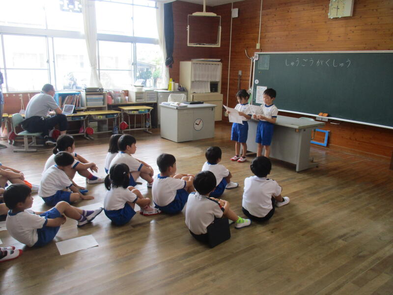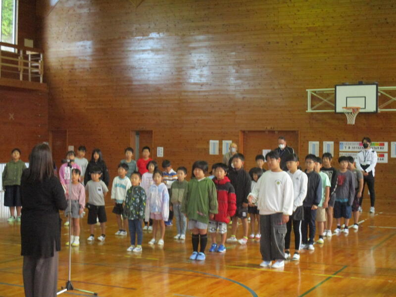 29日に全校朝会がありました。校長からは運動会の話等から何かほしいと思ったらそれなりに努力をしないといけないという話があり、生徒指導担当からはあいさつがよくできている子供の紹介と自転車に乗るときに気を付けないといけないことの話がありました。そして最後に、文集ともだち、読書感想画、体力テストで優秀な成績だった子供たちの表彰を行いました。どの子供たちも本当によく頑張ったと思います。