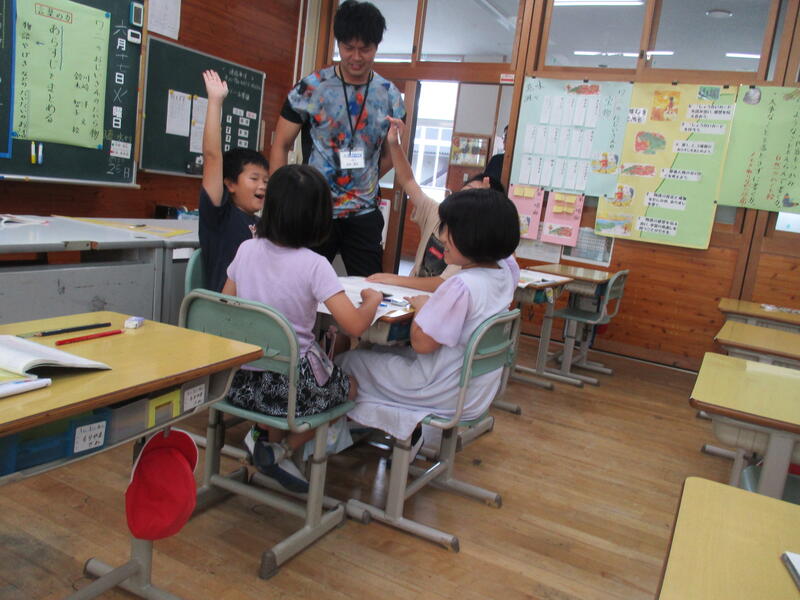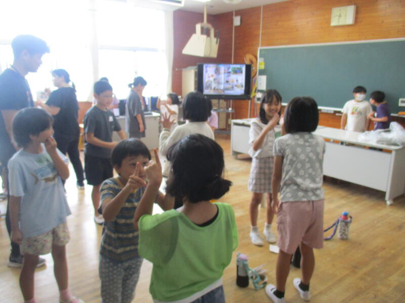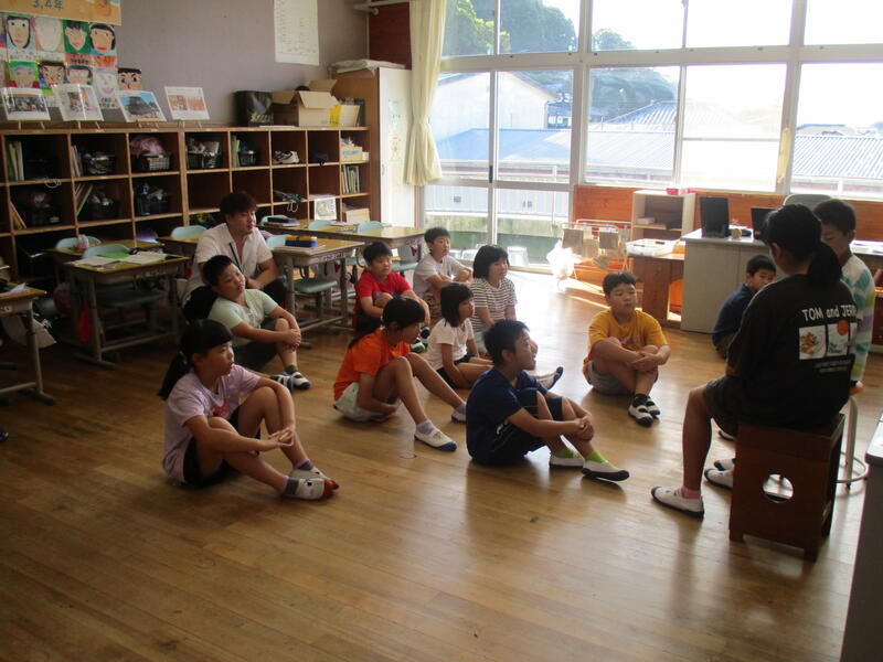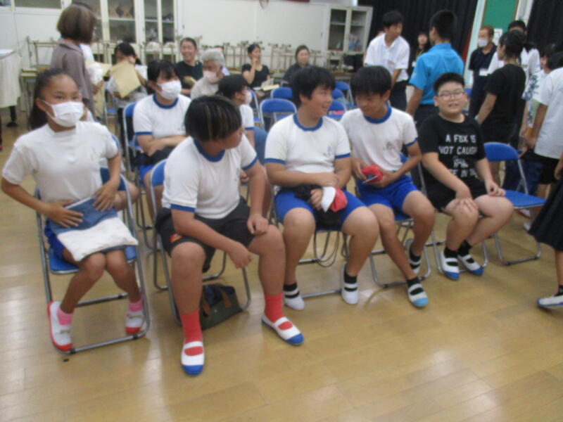 6日は、クラブ活動が行われました。今回の運動クラブは運動場でリレー遊びと鬼ごっこを行いました。リレーでは、涼しい風が吹いている中で最初は4チームに分かれて、次は2チームに分かれてリレーを行いました。全員が真剣に走っていましたし、鬼ごっこも楽しそうに行ってました。生活・文化クラブではジェスチャーゲーム、伝言ゲームを行いました。2つのチームに分かれて、お題を何にするのか、作戦はどうするのかを考えながら楽しんでいました。4年生以上が集まって、自分達が主体性をもちながら生き生きと活動していました。