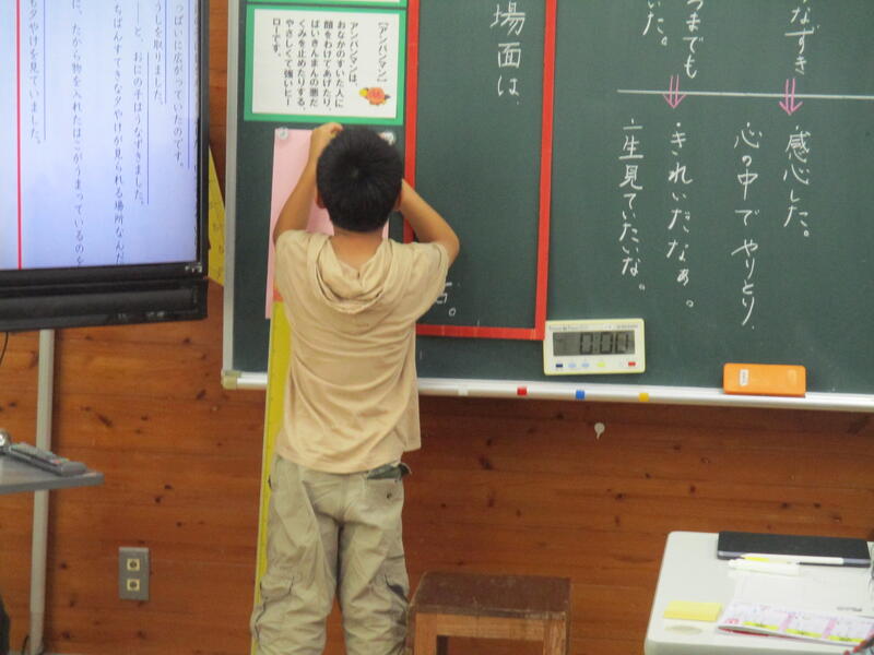 17日の1校時に3年生の国語科の研究授業が行われました。単元名は、ワニのおじさんのたから物でした。この学習では、物語を読んで、登場人物の言動や気持ちに関わる叙述から性格を想像し、場面のあらすじをまとめるというものです。子供たちは、物語を読んで、根拠となる文章をもとにしながら登場人物の気持ちや性格を読み取るという活動を行いました。子供たち同士での話合いも活発に行われていました。学習の最後に作られる紹介カードをどのように作っていくのかが楽しみです。