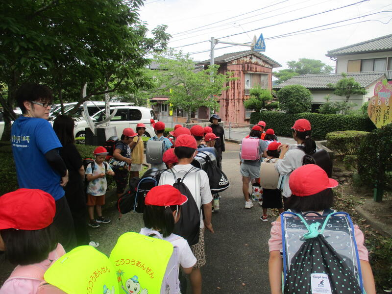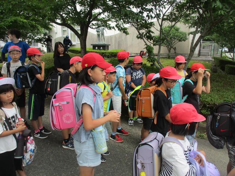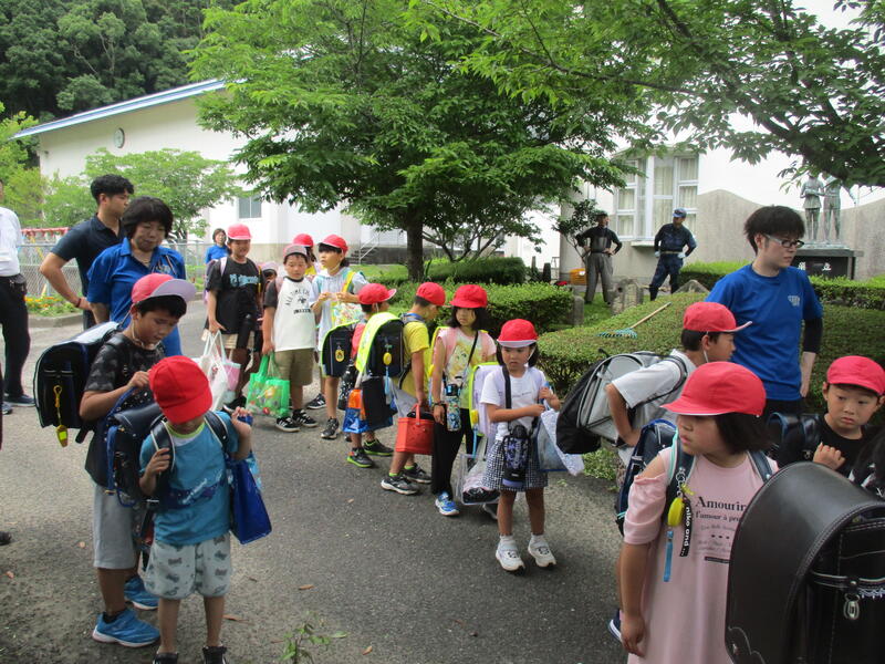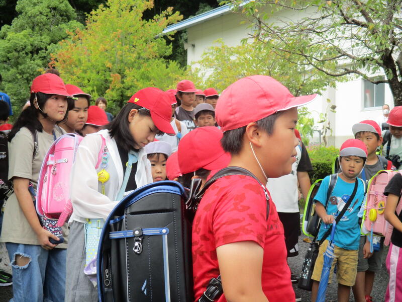 27日は集団下校の日で、1年生から6年生までの全ての児童が一緒に下校する日でした。子供たちは、各教室であいさつを終えて、校舎横に集合しました。全体での話については、学習関係の話でした。筆箱に入れておくべきもの、鉛筆5本程度、消しゴム、赤ペン、青ペン、定規だけではなく、定規の目盛りが読めるのか、鉛筆を削っているかなどのについても子供たちに伝えていました。その後、元気にあいさつして下校していました。