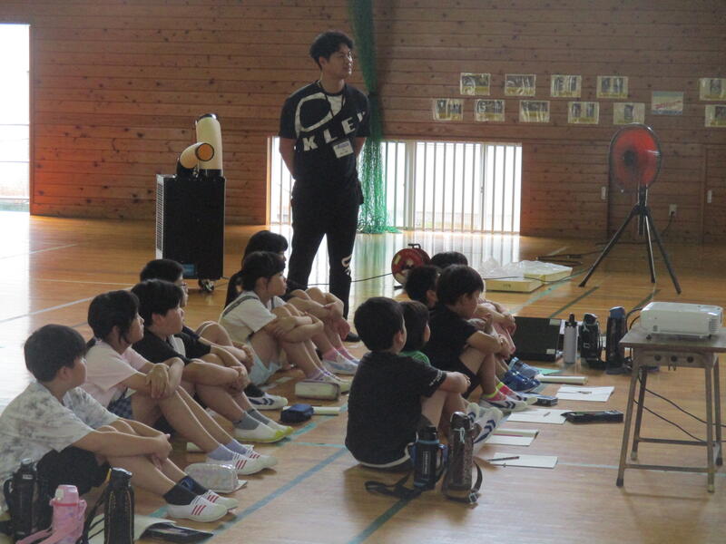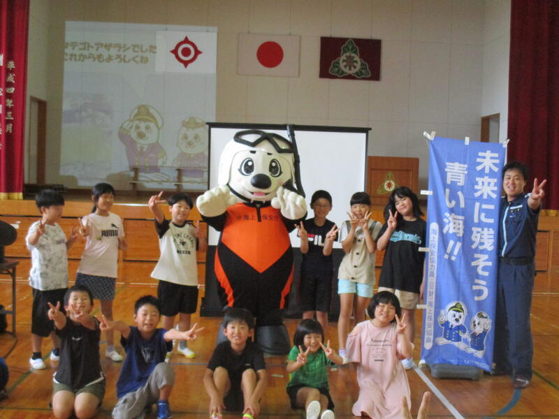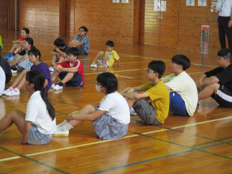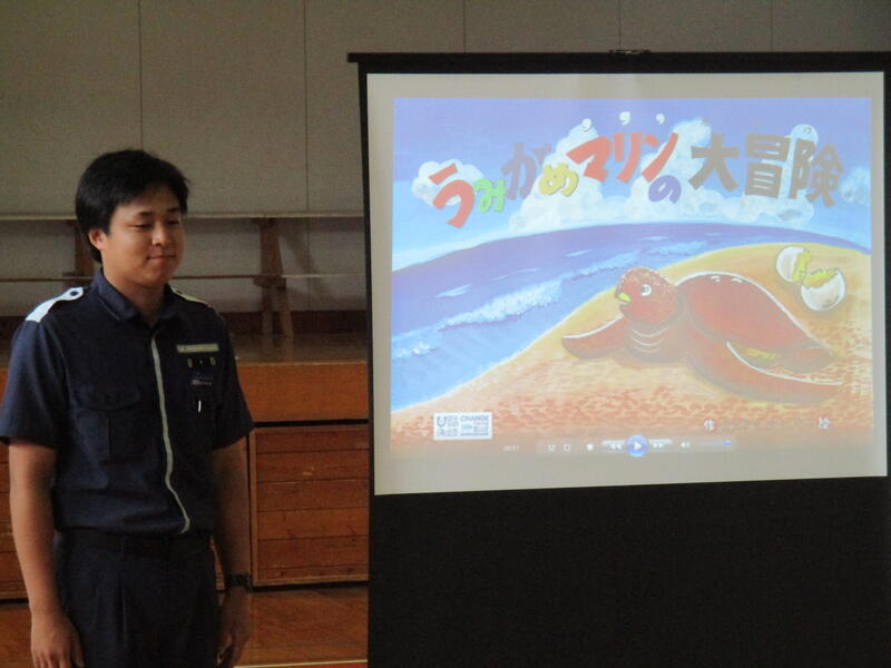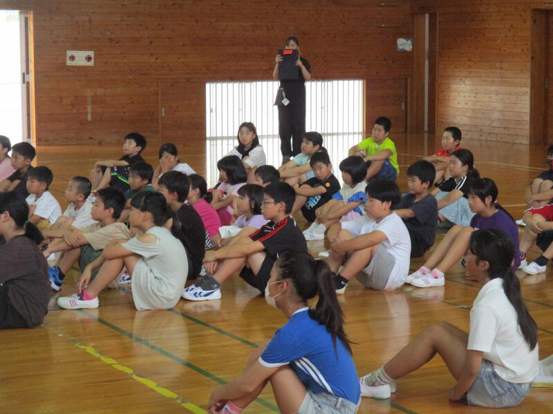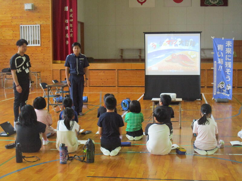 24日は3・4年生が、大堂津海水浴場で漂着物調査の学習を行う予定でした。これは、毎年実施している調査ですが、残念なことに今年は雷注意報と降雨のために海岸での調査ではなく、体育館で海上保安庁の方から環境教育についての話しを聞くことになりました。映像を見たり、クイズに答えたりしながら、自然を守ることの大切さや自然を守ることがそこに生息する生き物を守ることにつながることを学習しました。今回の学習から子供たちは、大堂津の海を大切にしようという意識をさらに高めたと思います。