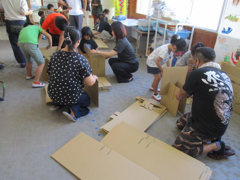 7日は日曜参観日で、たくさんの保護者の方が子供たちの様子を見に来てくれました。2校時に予定されていた防災教育では、講師に日南市危機管理課防災専門官の永井氏より災害時の備えについての講話と実際に簡易テントと段ボールベッドを組み立てる体験活動を行いました。最初に避難するときに気を付けることなどの話をしていただいた後に、保護者の方々と簡易テント、段ボールベッドを組み立てました。子供たちと保護者の方が一緒になって素早く、正確に作ることができました。災害がいつ起こるかわかりませんので、用心をするうえでもとてもいい体験になったと思いました。