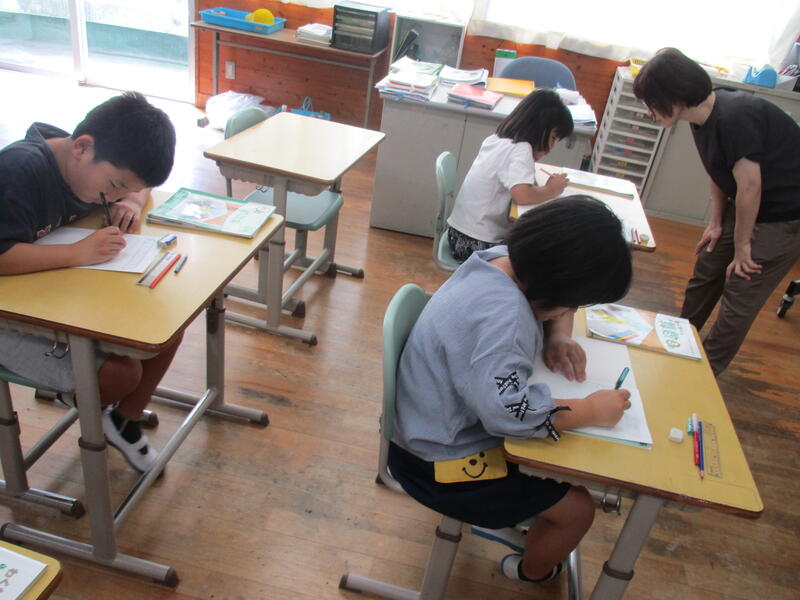 7月の生活目標は、「1学期のまとめをしよう」です。子供たちは1学期に学習した内容を理解できるまで復習を頑張っているところです。10日の5校時目は学びの見届けの時間として、2年生から6年生までが国語の物語文の学習プリントをしていました。学習プリントを終了すると自分がこの時間で頑張りたい内容について、自分で考えながら取り組んでいました。1学期のことは1学期内で終わらせようとすることはとても大切なことだと思います。