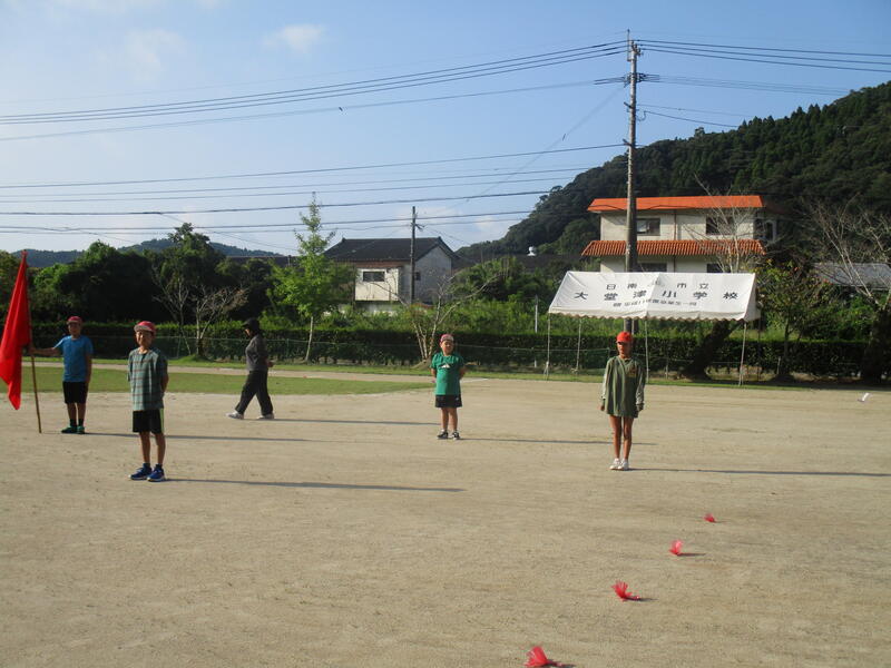 21日は最後の全体練習でした。今回の全体練習では開閉会式、全校リレー、大堂津音頭、応援を行いました。暑さ等も心配することなく終えることができました。今回の練習で素晴らしいと感じたことは運動会の歌や応援する際の声がとても大きかったということです。運動会は表現や団技、徒走、リレーに目がいきがちですが子供たちの一体感のある応援や大きな声で歌う歌声、きびきびとした態度にも注目していただければと思います。