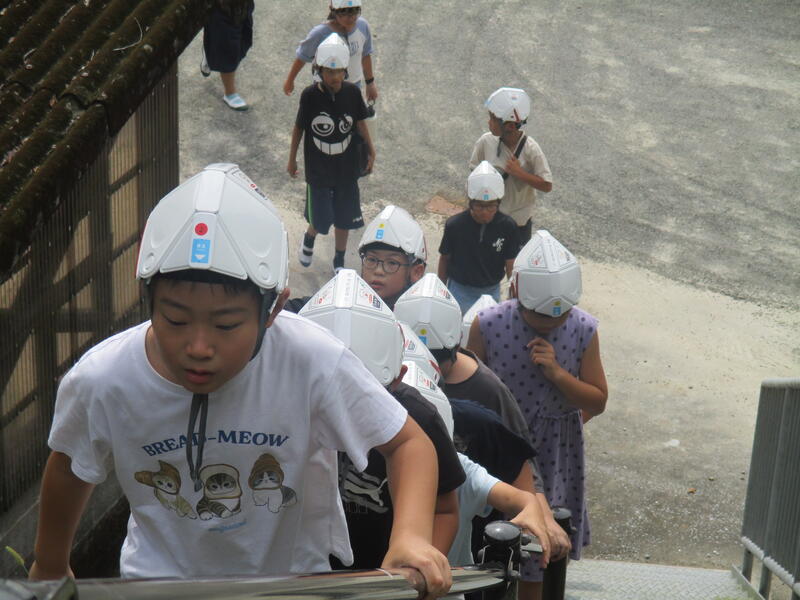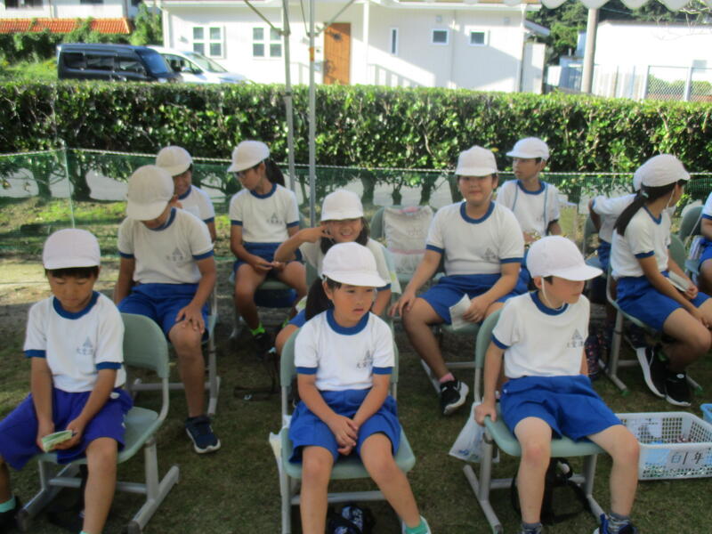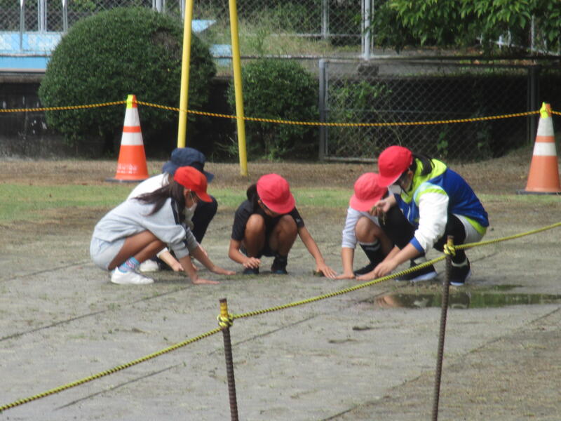 3日は避難訓練が行われました。今回の避難訓練は子供たちに予告せずに昼休み時間から5時間目にかけて行ったところです。訓練の様子としては、校内放送と同時に運動場にいた子供たちは一斉に運動場の中心に集合し座りました。今回の避難訓練に関しては職員は率先して声かけ等を行わなかったですが、高学年児童が声を出して座らせ、落ち着かせていました。二次避難をする際も先頭で引っ張る子供、後方から全体を押し上げたり、安全に移動できるように声かけをする子供、避難したら学年ごとに整列させるなど、高学年児童を中心に本当によく頑張っていました。大人がいなくても自分達で行動できるということを証明した避難訓練でした。