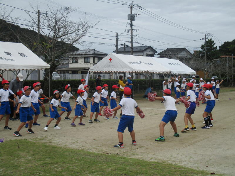 15日の朝から2時間目にかけて全校体育の3回目を行いました。今回の全校体育では、これまでの全校体育で練習した内容と各学年部の中で練習してきた内容を合わせて行っていくというものです。今回は特に係の子供たちの動きや表現や団技、徒走、リレーの入退場を中心に行っていきました。特にエール交換や応援は両団ともに練習の成果が出ていたように思います。子供たちの声が本当によく出ていました。