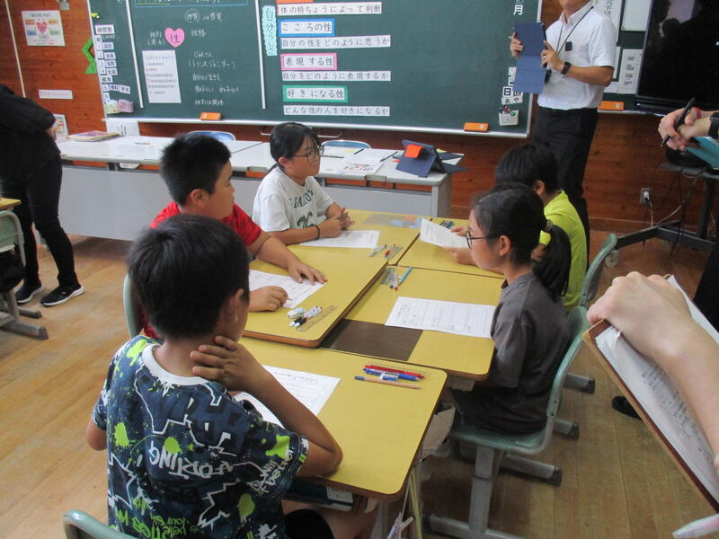 21日の5校時に日南市内の小中学校から20数名の先生方をお迎えしてレインボープランの研究授業が5年生の教室で行われました。この授業は、日南市のいのちの教育の手引きを基に行う授業です。当日は、学級担任と養護教諭の2名で「性」についての授業を行いました。子供たちはLGBTQ+について学び、最終的に性は、体の性、こころの性、表現する性、好きになる性の全てが含まれた「自分らしさ」のことであることに気づきました。さすが5年生の子供たちだと思いました。