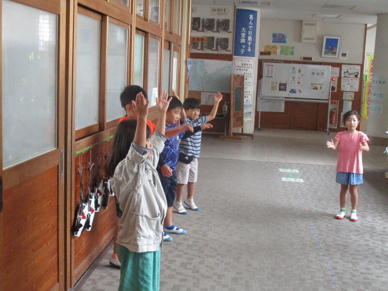 3日の下校指導は、雨天だったために学校内で話しとあいさつをしました。今回は早寝、早起き、朝ごはんについてで車のエンジンとガソリンになぞらえて、早寝、早起き、朝ごはんの必要性を話してくれました。もうひとつが朝のあいさつ運動であいさつがよい児童の紹介があり、その児童に遠くから大きな声でするあいさつの見本も見せてもらいました。最後に明日の過ごし方についての話がありました。