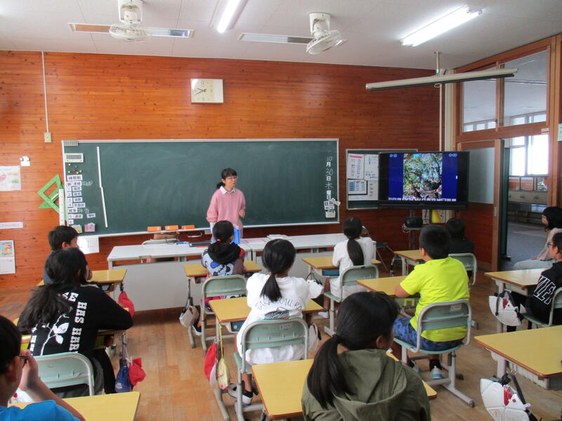 30日の2時間目、5、6年生は修学旅行に向けて学校図書司書の多田先生から話をしていただきました。話というよりも修学旅行で訪れる鹿児島県に関することを歴史や日南市との関わりも含めたクイズ形式で話してくれました。多田先生は学校図書司書の先生らしく、郷土の偉人や鹿児島のこと掲載されている本も紹介してくださいました。子供たちは来週の木曜日、金曜日に修学旅行に出発します。思い出もですが、この時間に学習したことも確認してきてほしいと思います。