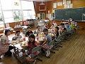 今日は「交流給食」の日でした。6つの「浜っ子班」(異学年グループ)に分かれ、先生も交えて楽しく食べました!!