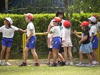 今日の「えがおタイム」は、ボールリレーをしました。浜っ子班で協力してボールを上から、下からとつないでいきました。