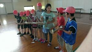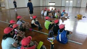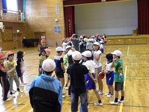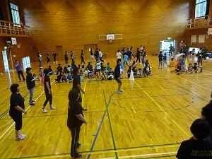 追跡ハイキングが少し早く終わりましたので、指導員の先生より、ミニゲームを体育館でしています。