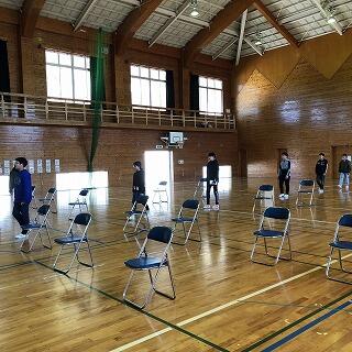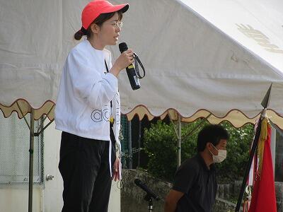 21日の朝の活動の時間に体育館で運動会に向けて結団式を行いました。