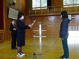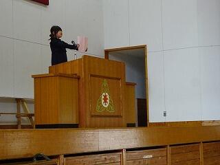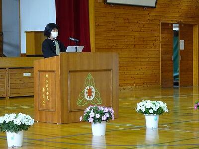 令和3年度の修了式を行いました。代表児童の作文を1年生が立派に読み上げました。