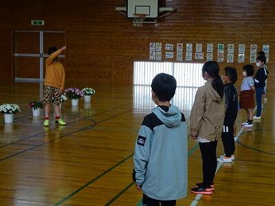 29日に本年度第1回目の全校体育を行いました。今回は、整列の仕方、基本姿勢、行進の仕方等に気を付けながら開閉会式の練習を行いました。体育主任の山下先生の丁寧で分かりやすい指導の下で全児童とも集中して取り組んでいました。