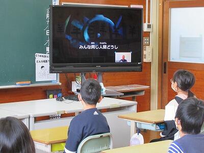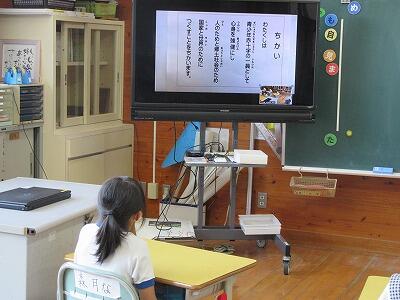 「大堂津ふるさとカルタ」の原案をくださった地域の方による読み聞かせを6年生がオンライン で視聴しました。