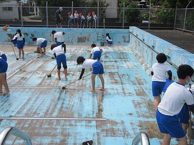 高圧洗浄機等を準備してくださり、午前中約2時間、プール内及びプールサイドをきれいに清掃してくださいました。隅々までとてもきれいにしてくださりありがたい限りです。20日に子どもと職員によるプール清掃を予定しています。保護者の方々に感謝の気持ちを込めて、しっかりと清掃を行い、本年度の水泳の学習に臨みたいと思います。