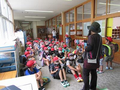月曜日に1年生と2年生が生活科の学習で学校内を探検しました。1・2年生がグループで学校内を回り、教室の数や種類、何をするところでどんな先生が働いているのか等を調べる学習です。
