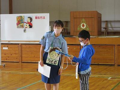 4月28日に交通教室を実施しました。低学年と中高学年に分かれて、日南市の警察署の職員の方と交通協会の交通指導員の方々に指導していただきました。最初に自転車の正しい乗り方と安全な歩行の仕方についての説明を聞き、その後、実際に道路を歩いて正しい横断歩道の渡り方等を練習しました。