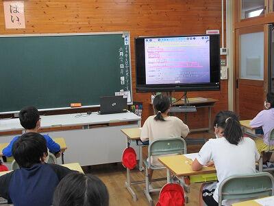 卒業生へのメッセージや、クイズなどを5年生の進行で行い、各教室で楽しんでいました。