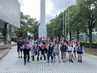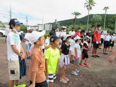 当日は地域コーディネーターの平角さんが案内をしてくださいました。途中で大堂津港が昔は砂浜だった話を聞いたり、戦争の慰霊碑を見学したりしながら到着しました。
