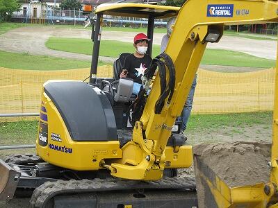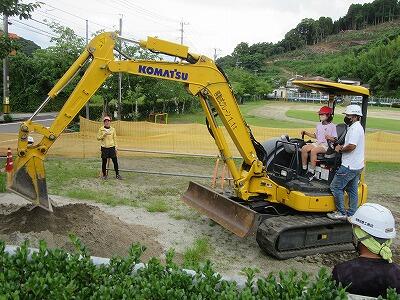 施工業者の熊田原工務店さんは、工事期間中に、キャリア教育の一環で、5・6年生に工事体験教室を開催してくださり、ユンボの試乗体験等を経験させて下さりました。地域のため、学校のために本当に有り難うございました。