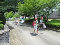 交通指導員の方々の説明は具体的で分かりやすく、子ども達も真剣な表情で聞いていました、その後の道路での練習にも真面目に取り組んでいました。
