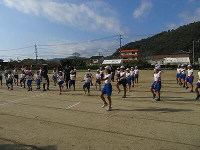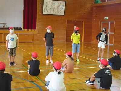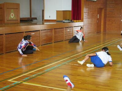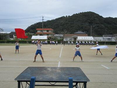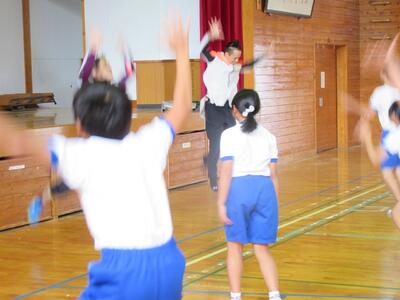 4日に第2回の全校体育を実施しました。今回は、エール交換と全校ダンスの大堂津音頭の練習を行いました。