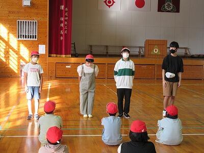27日に、5・6年生は、文化派遣事業で外部講師による表現の授業を体験しました。コンテンポラリーダンスユニットの「んまつーポス」の、豊福さん、みのわさん、坂元さんによる指導で、体全体を使っての表現活動を行いました。子どもたちは、とても生き生きとした表情で取り組んでいました。新鮮な体験だったことと思います。また、次回が楽しみです。
