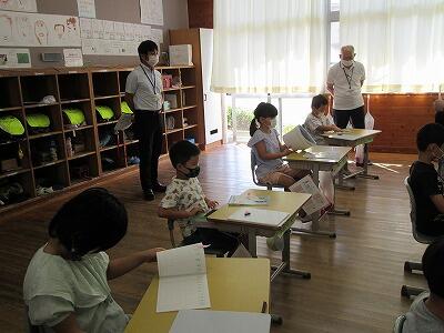 その後は教室で飫肥杉の特徴や自然乾燥と人工乾燥に違い等について話を聞きました。子ども達は、日南市の誇る飫肥杉の素晴らしさに聞き入っていました。子ども達が持ち帰った鉛筆立てに是非触れながら家族でまた話をしていただくと良いかと思います。