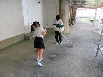 27日に2学期最初の縦割り清掃を実施しました。新しい清掃場所で新しいメンバーでの清掃でした。上学年の子どもたちが下学年の子どもたちに清掃の仕方を優しく教えていました。下学年の子どもたちも上手にほうきで掃く姿が見られ成長を感じました。
