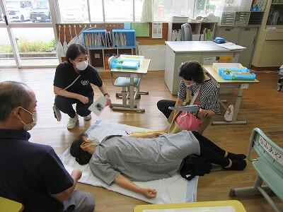 職員それぞれが役割分担をし、救急車が到着するまでの児童への適切な対応の仕方、救急車への連絡の仕方、記録のとり方等を実際に行い、その後、今回の対応を振り返って、さらに工夫すべき点等について、全職員で協議し、共通理解を図りました。