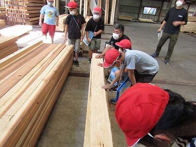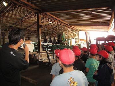5日に、3・4年生は、飫肥杉探検隊の学習で南那珂森林組合の日南支所に見学に行きました。森林組合では、飫肥杉について、飫肥杉の特徴や飫肥杉の育て方、伐採の仕方等について詳しく話を聞くことができました。また、飫肥杉が実際に機械で木材の板や柱に加工される場面を見学したり、板に触れながら話を聞いたり、作業用のヘルメットをかぶらせてもらったり等、楽しく活動ができました。